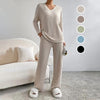 1 * Ensemble en maille pour femme : haut à col V et pantalon droit