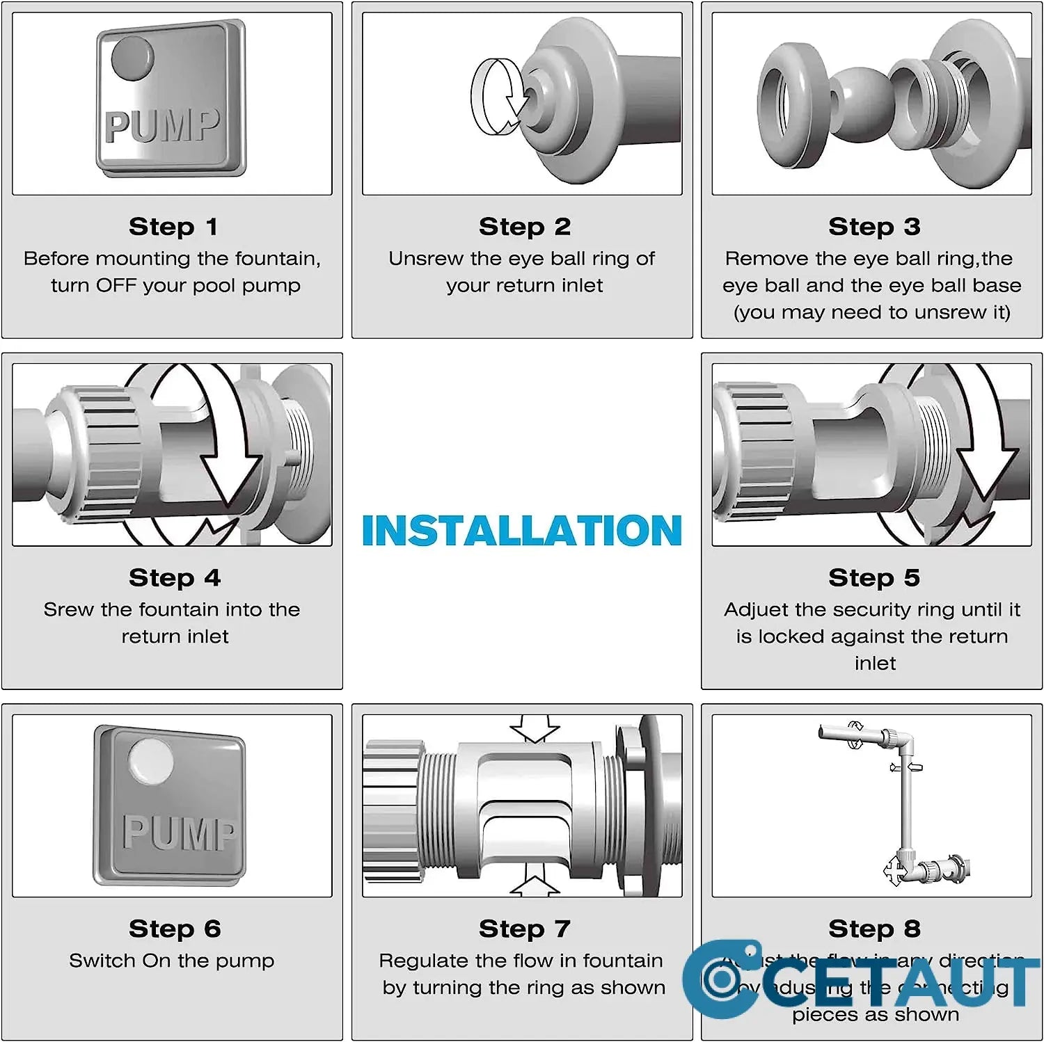 Das Wasser reinigt besser und erzeugt ein angenehmes, beruhigendes Geräusch. Es eignet sich sehr gut als Dekoration für Ihren Swimmingpool und Gartenteich.