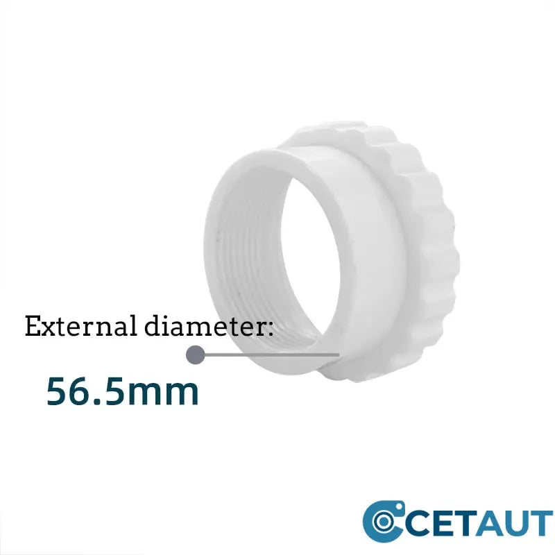 Einfaches zusätzliches Adapterdesign, kompatibel mit den meisten 1 ½"-Rücklaufdüsen für eingebaute Pools und 1 ½"/1 ¼"-Einlass-/Auslassanschlüssen für oberirdische Pools.