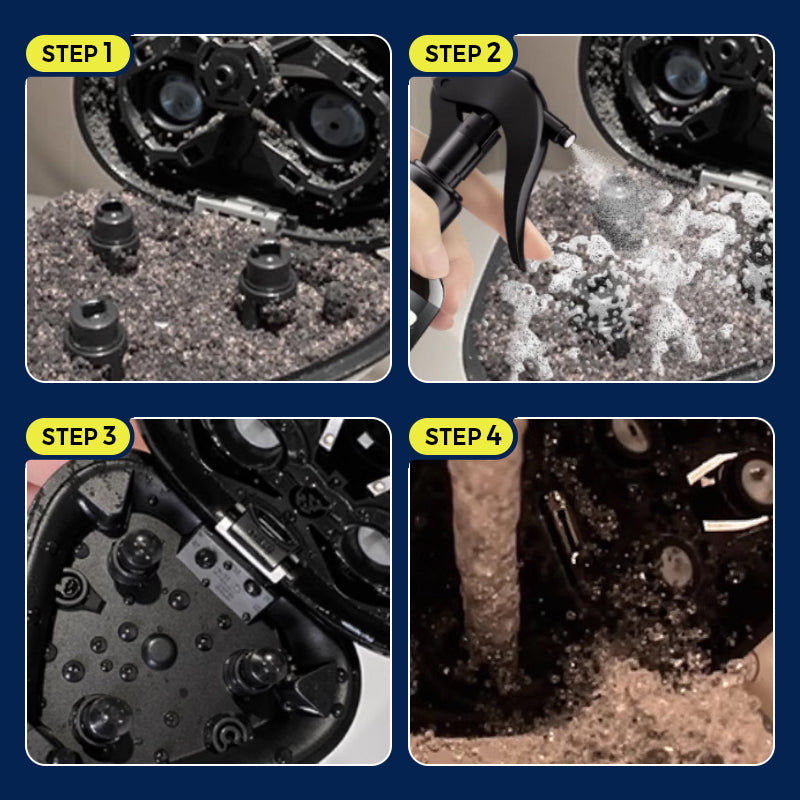 APPLICATION FACILE : Éteignez simplement votre appareil, vaporisez le nettoyant sur les lames et le filtre, laissez agir trois minutes, puis brossez et rincez à l’eau pour un résultat optimal.